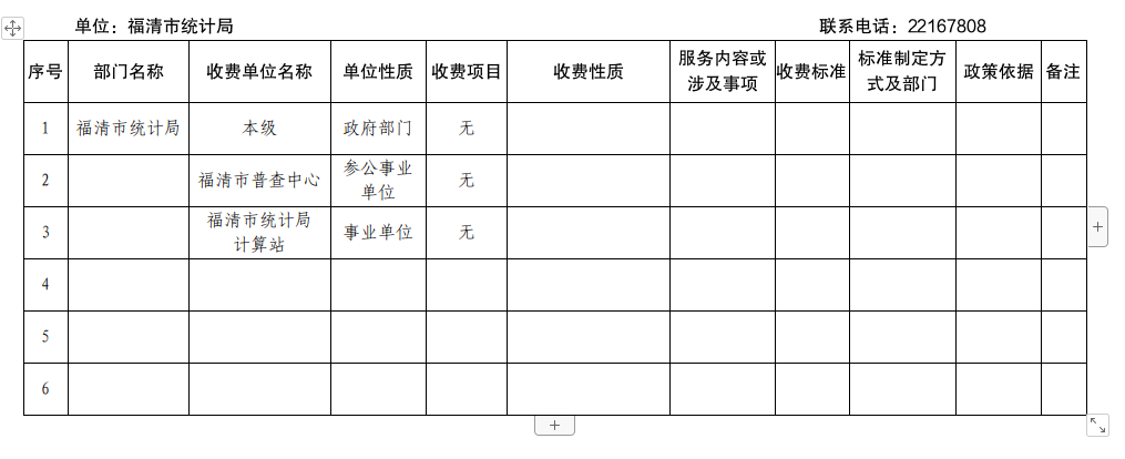 福清市统计局及下属单位综合性涉企收费目录清单