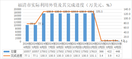 2025年4月福清市实际利用外资及其完成进度