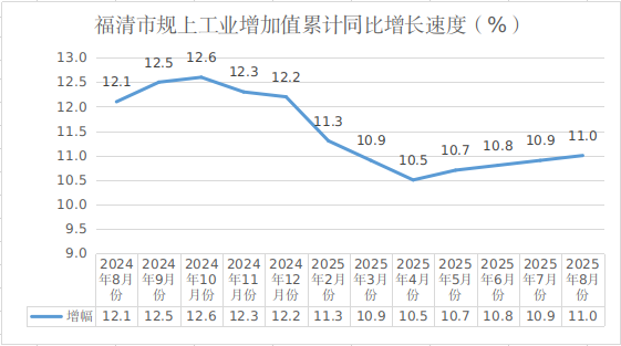 2025年8月福清市规上工业增加值累计同比增长速度