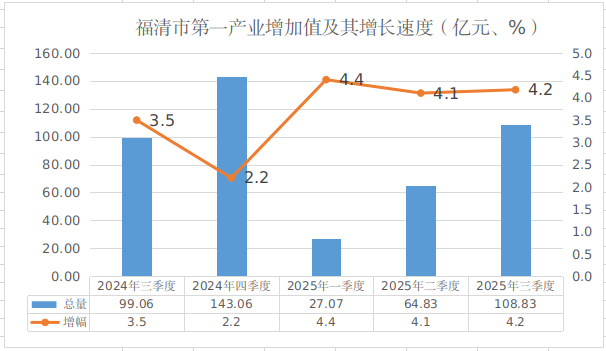 2025年9月福清市第一产业增加值及其增长速度