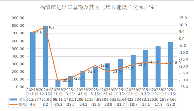2025年11月福清市进出口总额及其同比增长速度