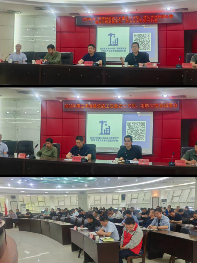 2025年10月21日上午,福清市住房和城乡建设局组织召开“2025年福清市房屋市政工程第三季度质量安全分析会暨第四季度质量安全大检查部署会”。全市各大工业园区、政府投资平台公司及各在建项目的建设、施工、监理单位负责人参会。