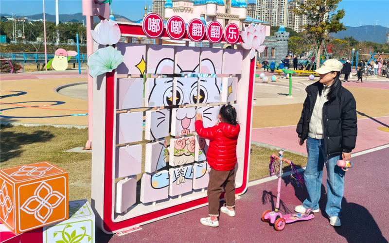 在福清虎溪公园蜿蜒的彩虹栈道上,“廉年有余”的趣味打卡点前,常能看到孩子拉着父母拍照;栈道旁的互动翻转牌,轻轻一拨,一面是活泼的“纪嘟嘟”形象,另一面便是以篆、隶、楷、行、草等不同字体书写的“廉”字,汉字之美在翻转间悄然呈现。走累了,在公园的驿站稍作休息,手机轻扫墙贴“纪嘟嘟”二维码,一段活泼的廉洁主题旋律便轻轻响起,为闲暇时刻添上一缕清音。