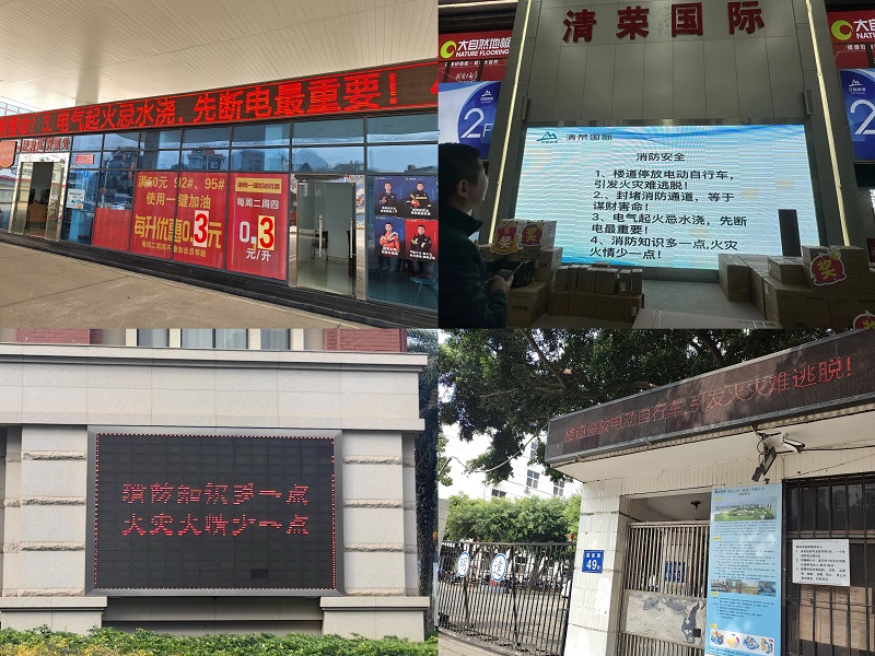 千屏万幕“播”消防。大队积极与各单位负责人进行协商,利用楼宇电视、LED显示屏循环滚动24小时不间断播放预防“小火亡人”的宣传标语和警示视频,全方位普及消防安全知识,使广大群众在上下班、娱乐、购物的同时,进一步学习消防,感受到消防安全宣传的强劲舆论氛围,取得了积极有益的社会效应和宣传效果。