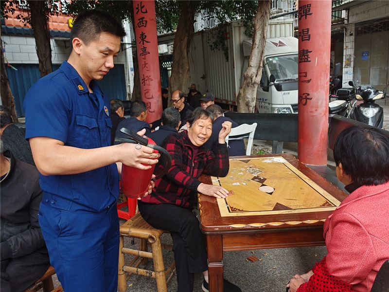 连日来,大队宣传员和消防志愿者深入辖区长者食堂,积极为老年群体发放宣传资料,提醒老年人们要切实注意消防安全。同时大队采取“上门入户”的形式,通过举办各类消防知识培训班、消防知识讲座等方式,有针对性的组织走进长者食堂开展宣传培训演练活动。大队针对部分留守老人大多数不懂普通话和消防安全意识薄弱的实际,将消防宣传工作与福清方言相结合,线下一对一用福清方言翻译消防安全宣传逃生知识。大队利用多站点开展线下宣传演练送温暖活动,向老人们讲解基本的防火、灭火、逃生疏散知识,及灭火器的正确使用,重点提醒老人们不要卧床吸烟,不要私自用电等。