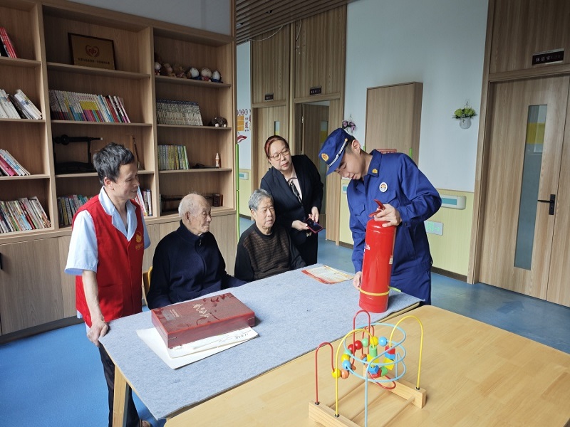 随后,消防宣传人员结合养老院实际情况,对养老院的灭火器、消防栓、疏散通道、指示标志、应急照明灯等进行了详细检查,特别对老人居住房间、厨房等重点区域的电线线路、插座等重点部位逐一进行了排查。同时,还指导工作人员正确使用灭火器材、室内消火栓等消防设施,掌握初期火灾扑救和组织老人安全疏散逃生的技能。并提醒各养老院工作人员要注意防火安全,严格落实消防安全制度,加强防火检查,巡查,强化消防安全培训和逃生演练。