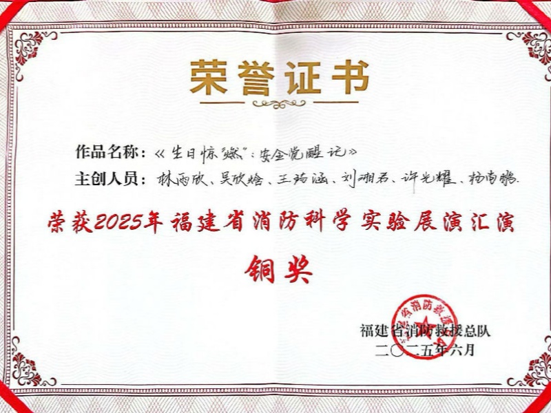 近日,福清大队代表支队参加2025年福建省消防科学实验展演汇演,在各级领导的大力支持和精心帮助下,凭借出色的表现,创新主题与沉浸式互动设计,在此次比赛中脱颖而出,斩获铜奖,彰显基层消防科普实践的新突破。
