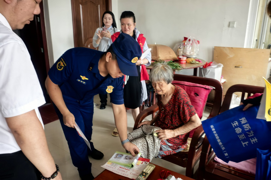 入夏之后,居民用火用电量剧增,火灾风险显著增大。特别是独居失能老人等特殊性人群,因年纪较大、行动不便、自救能力差,发生火灾极易造成伤亡。为切实做好当前社会火灾防控工作,连日来,福清大队联合燃气、电力、物业等单位开展居民家庭消防安全“敲门入户”宣传行动,做到精准帮扶,撑起防火“安全伞”。