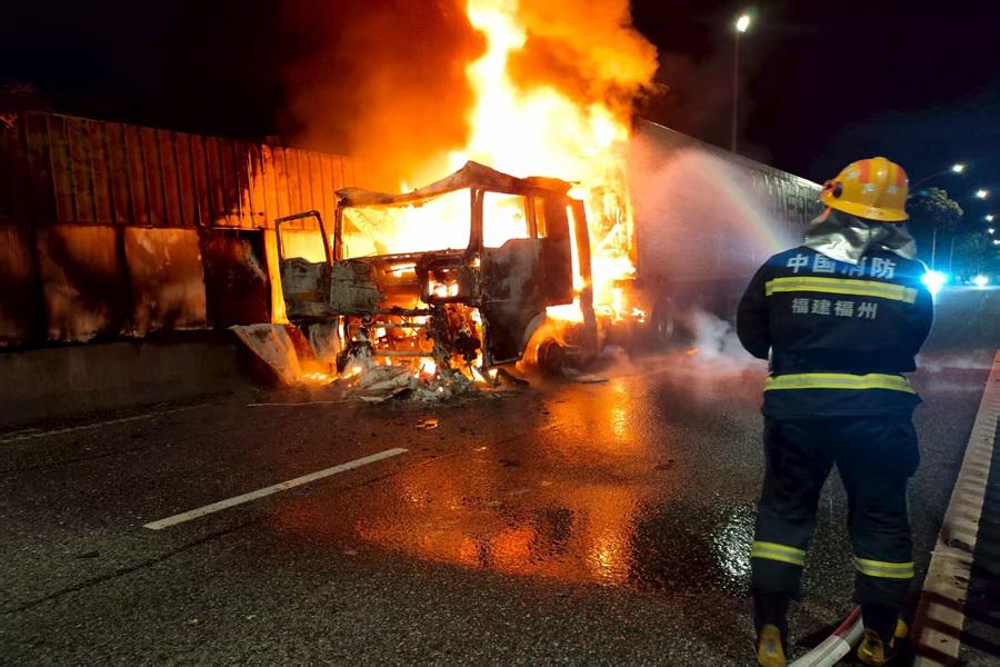 8月10日21时28分,福清市G324国道宏路往镜洋方向1公里处一辆货车着火。接到报警后,宏路站立即出动2车12人火速赶往现场进行处置。