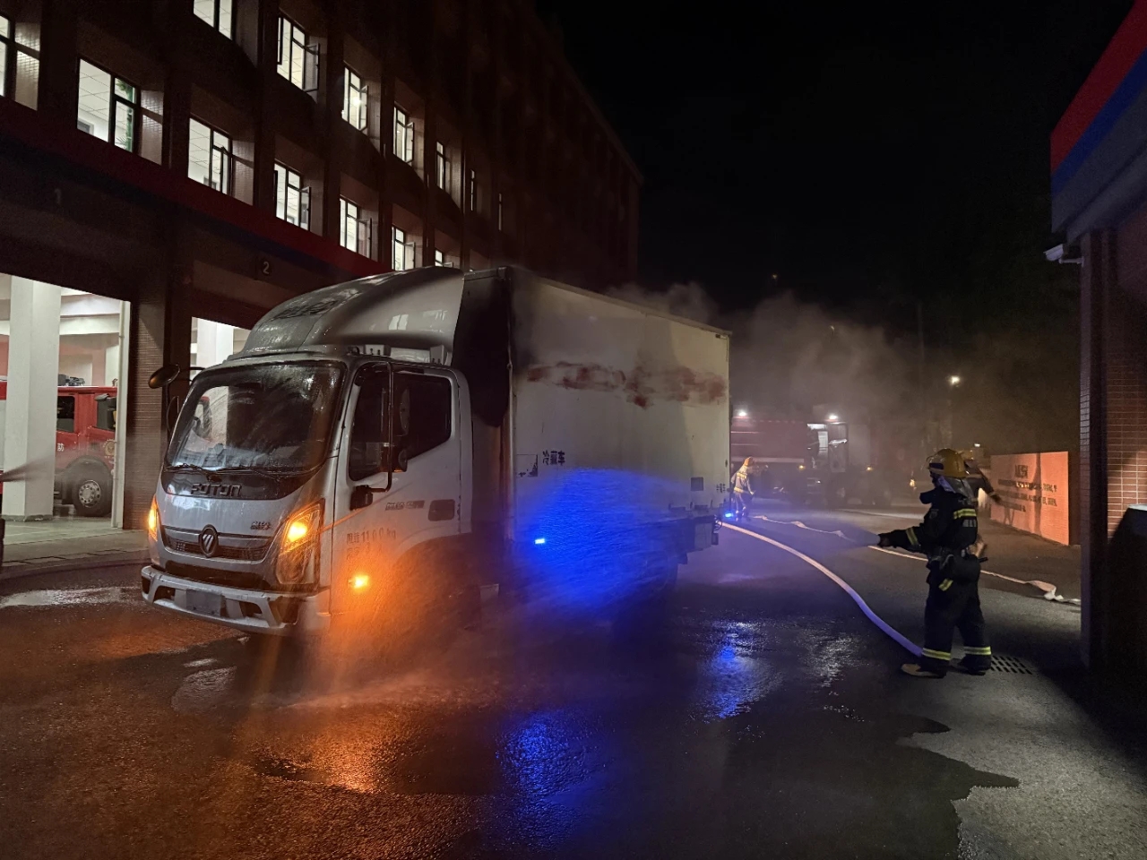 从车辆驶入营区到火势完全扑灭,整个救援过程仅用20分钟。此次极速处置不仅成功保住了货车主体,更未造成人员伤亡及周边设施损坏。目前,车辆具体起火原因仍在进一步调查中。