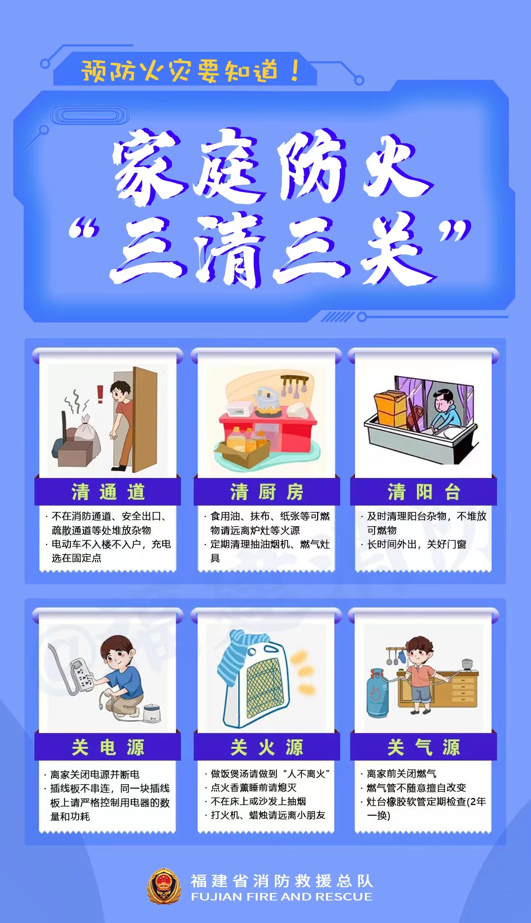 预防火灾要指导!家庭防火“三清三关”!