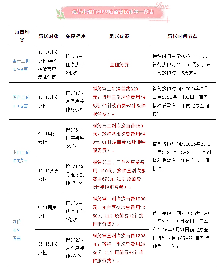 “根据市卫健局、市教育局、市财政局和市妇联联合发布的方案,此次项目为适龄女性提供4种HPV疫苗减免接种优惠政策,涵盖九价HPV疫苗、国产二价HPV疫苗、进口二价HPV疫苗等多种疫苗,最高可减免1298元 ,适龄女性可按照知情、自愿原则选择接种其中一种HPV疫苗。”